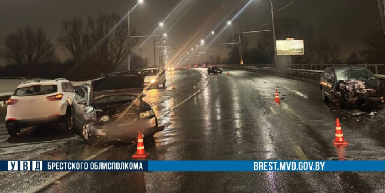 В понедельник, 26 января, около 20 часов в Бресте произошло дорожно-транспортное происшествие с участием четырех легковых автомобилей. Об этом информирует УВД Брестского облисполкома.