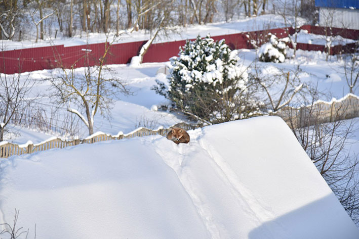 В один из морозных зимних дней очевидцы заметили лису: животное спокойно спало на крыше хозяйственной постройки неподалеку от жилого дома.