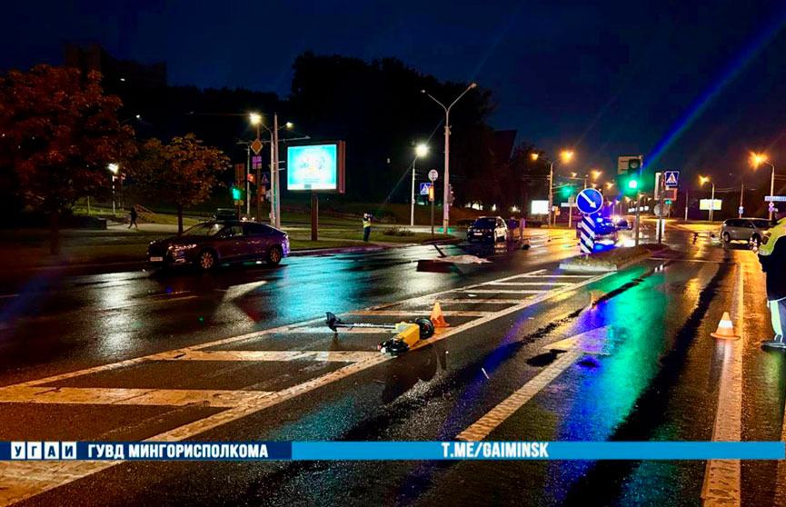 В Минске после столкновения с автомобилем погиб пользователь электросамоката. Авария произошла около 05:00 на проспекте Машерова.