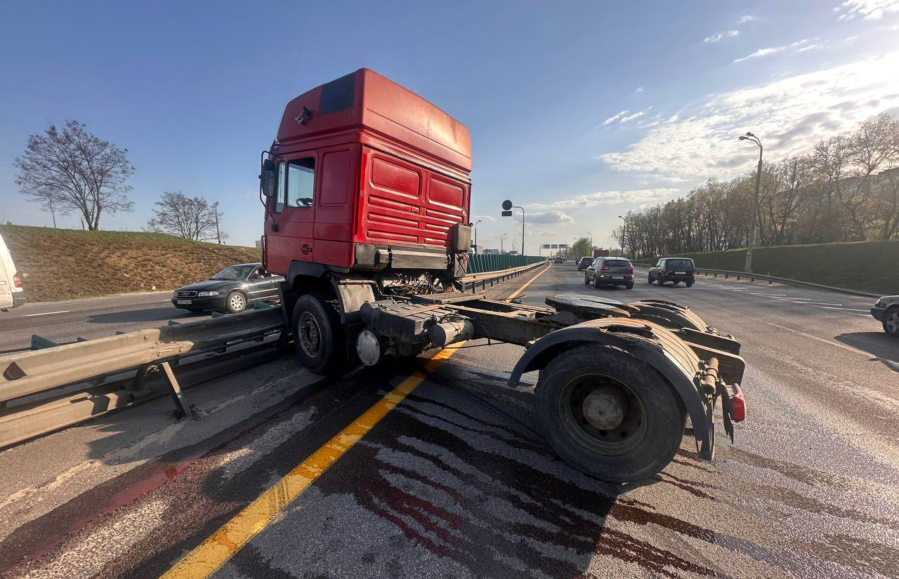 Почувствовал себя плохо за рулем. Водитель тягача снес дорожное ограждение на МКАД