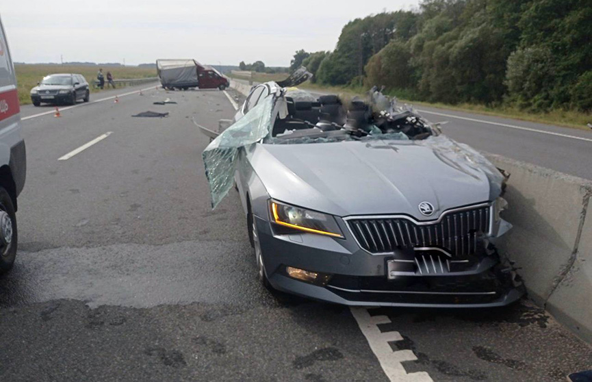 По предварительным данным, 44-летний водитель Skoda, который ехал в сторону Минска, начал опережать фуру по крайней левой полосе и врезался в стоявшую в ней машину прикрытия работников дорожной службы, которые ремонтировали бетонные блоки на разделительной полосе.