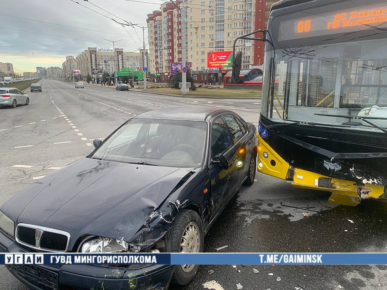 Проигнорировал красный свет. В Минске водитель без прав спровоцировал ДТП с автобусом