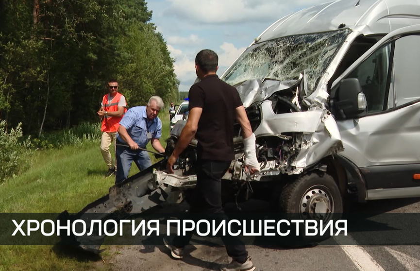 Следователи воссоздали полную картину произошедшего. Движение в направлении Бреста частично ограничили. На трассе – все свидетельства аварии: разбитое стекло, фары, элементы микроавтобуса. И те самые участники дорожного движения, которые управляли транспортом.
