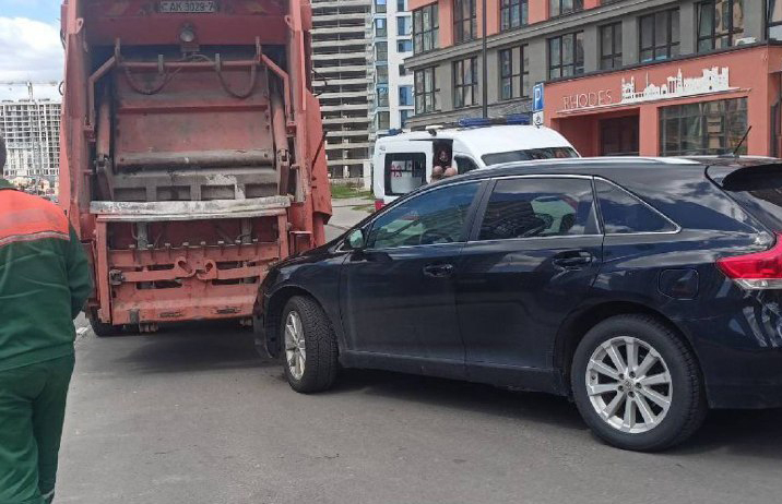 В Минске мусоровоз врезался в легковушку, пострадала женщина
