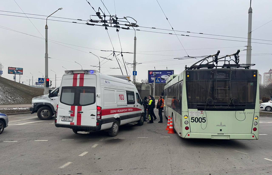 Как сообщает Следственный комитет, в Минске по улице Шафарнянского сегодня днем произошло ДТП с участием троллейбуса, в котором пострадали два пешехода.