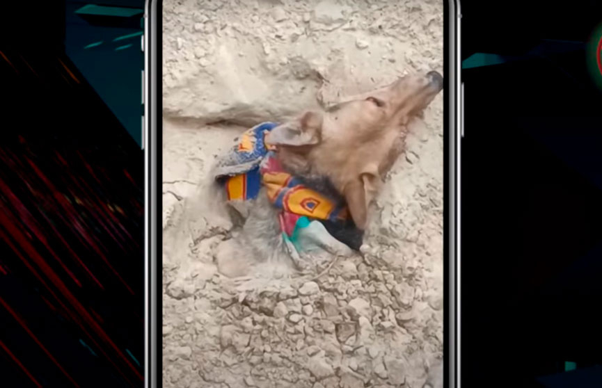 История звериной жестокости случилась в Светлогорском районе. Группа волонтеров прочесывала лес в поисках без вести пропавшего мужчины, как вдруг кто-то увидел яму глубиной около двух метров, а в ней из земли торчала голова собаки с чем-то завязанным на шее. Когда животное окликнули, стало понятно, что собака жива, и поисково-спасательный отряд тут же бросится на помощь животному.