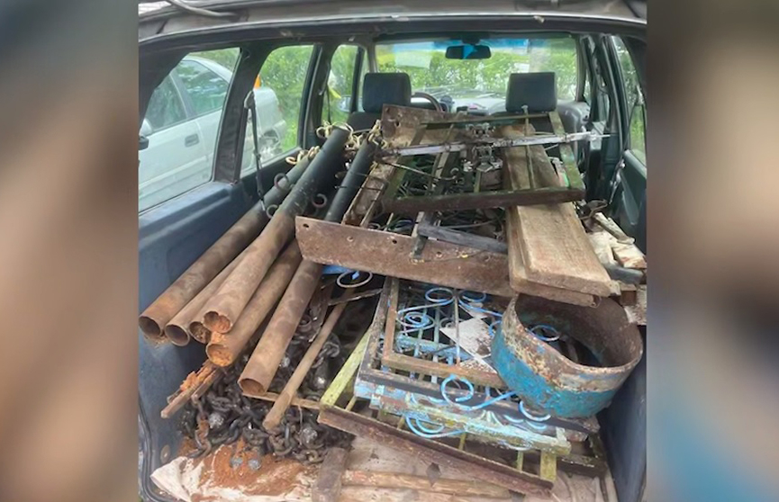Сообщается, что фигурант был задержан вблизи городского кладбища в Вилейке. В его авто обнаружены столбики, цепи, части оград с могил и даже кресты.