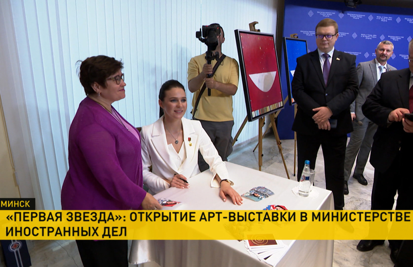 Экспозиция собрана из работ Сергея Криштаповича. Автор посвятил ее космосу. Идейным вдохновителем и музой стала первая белорусская женщина-космонавт Марина Василевская. Художник лично вручил ей собственную картину. А от министра – за стойкость и выдержку – медаль «100 лет дипломатической службы Беларуси». В знак благодарности космонавтка передала сувенир с орбиты – флаг Беларуси с эмблемой своего экипажа. Они пополнят экспозицию музея МИДа.