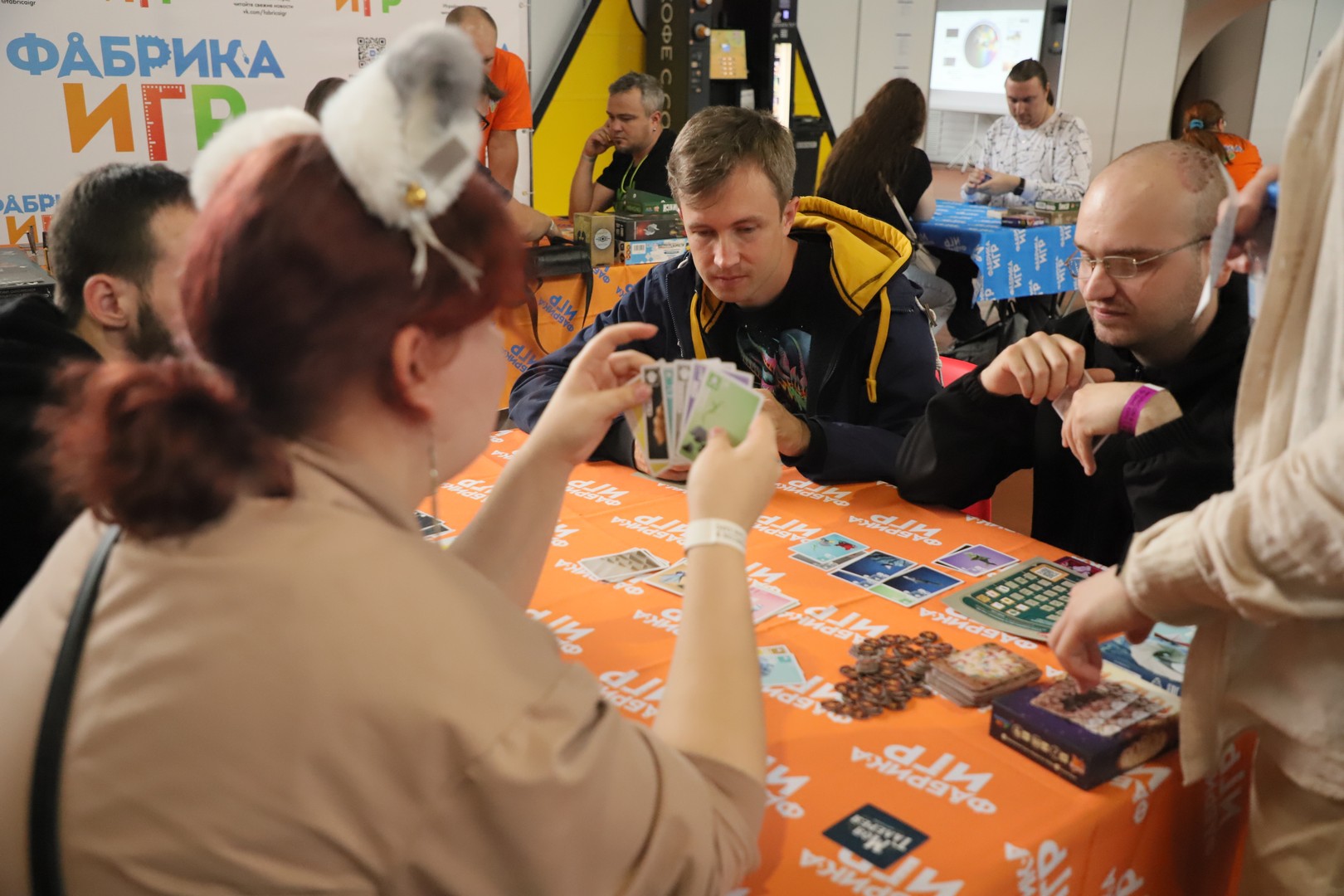 Настольные игры – еще одно распространенное увлечение у «среднестатистических посетителей конвентов». При этом речь идет как об обычных настольных играх, так и о настольно-ролевых играх (НРИ). Посетители соответствующих секций также имели возможность в них сыграть, в том числе и в НРИ.