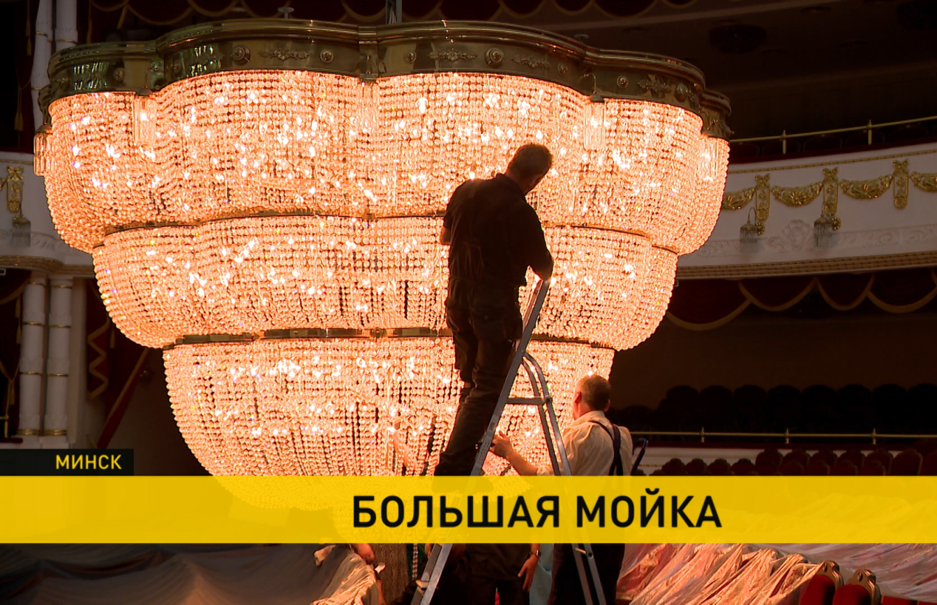 Один раз в год в Большом – спектакль, которого нет в афише. В легендарный театральный партер спустили гранд-люстру. И устроили ей «банный день». Зрелище столь завораживающее, как балет «Золушка» Прокофьева.