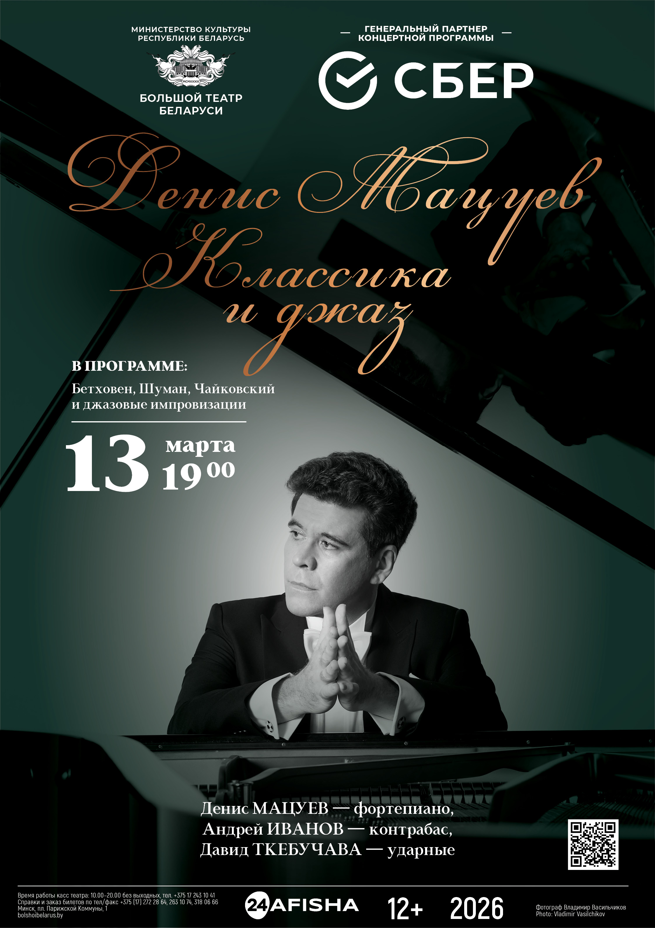 13 марта 2026 года в Минске состоится концерт пианиста-виртуоза Дениса Мацуева «Классика и джаз».