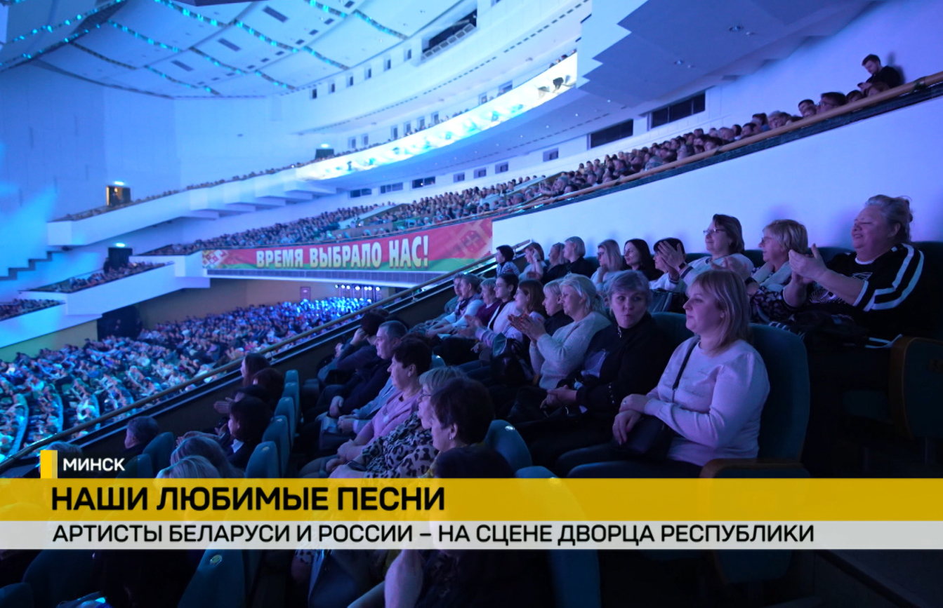Яркие эмоции зрителей и союзный талант – во Дворце Республики. «Наши любимые песни» – так называется концерт. Известные мелодии – подарок трудовым коллективам Минска. И благодарность за работу и вклад в развитие страны.