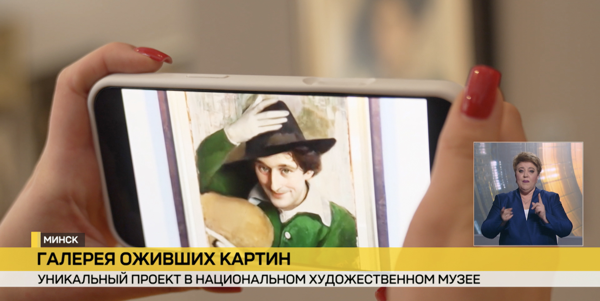 Ожили не только картины, но и их персонажи. По залу разгуливали современный Марк Шагал, девочка из-за рояля и та самая незнакомка с цветами. В основе проекта – знаковые полотна, переосмысленные с помощью современных технологий. Искусство поддержал бизнес, чтобы показать многообразие белорусского наследия и сделать его ближе каждому. Юдель Пэн, Иван Хруцкий, Антон Бархатков – их полотна знают по открыткам, маркам и даже денежным купюрам. Для первого этапа выбрали картины разных эпох – от реализма XIX века до произведений середины XX столетия. Задача – показать широту творческого наследия страны и дать зрителю возможность по-новому взглянуть на знакомые образы.