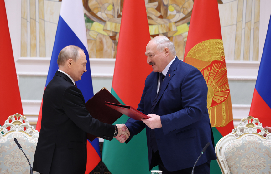 Александр Лукашенко и Владимир Путин утвердили постановление о концепции безопасности. В ней отражены стратегические интересы Союзного государства. Подписали лидеры и Межгосударственный Договор о гарантиях безопасности. Он учитывает в том числе обновленную ядерную доктрину России. Это в целом уникальные документы.