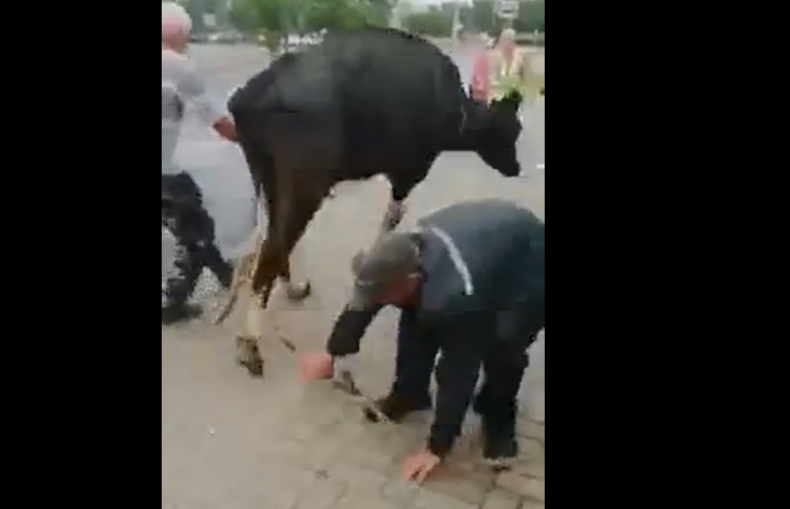 В ролике видно, как мужчины пытаются вывести корову из магазина с товарами для сада и огорода. Удалось набросить на шею животному веревку и выманить ее на улицу. Однако вскоре корова снова пыталась сбежать и в какой-то момент перешла на галоп, утверждает регионально издание «Вечерний Бобруйск».