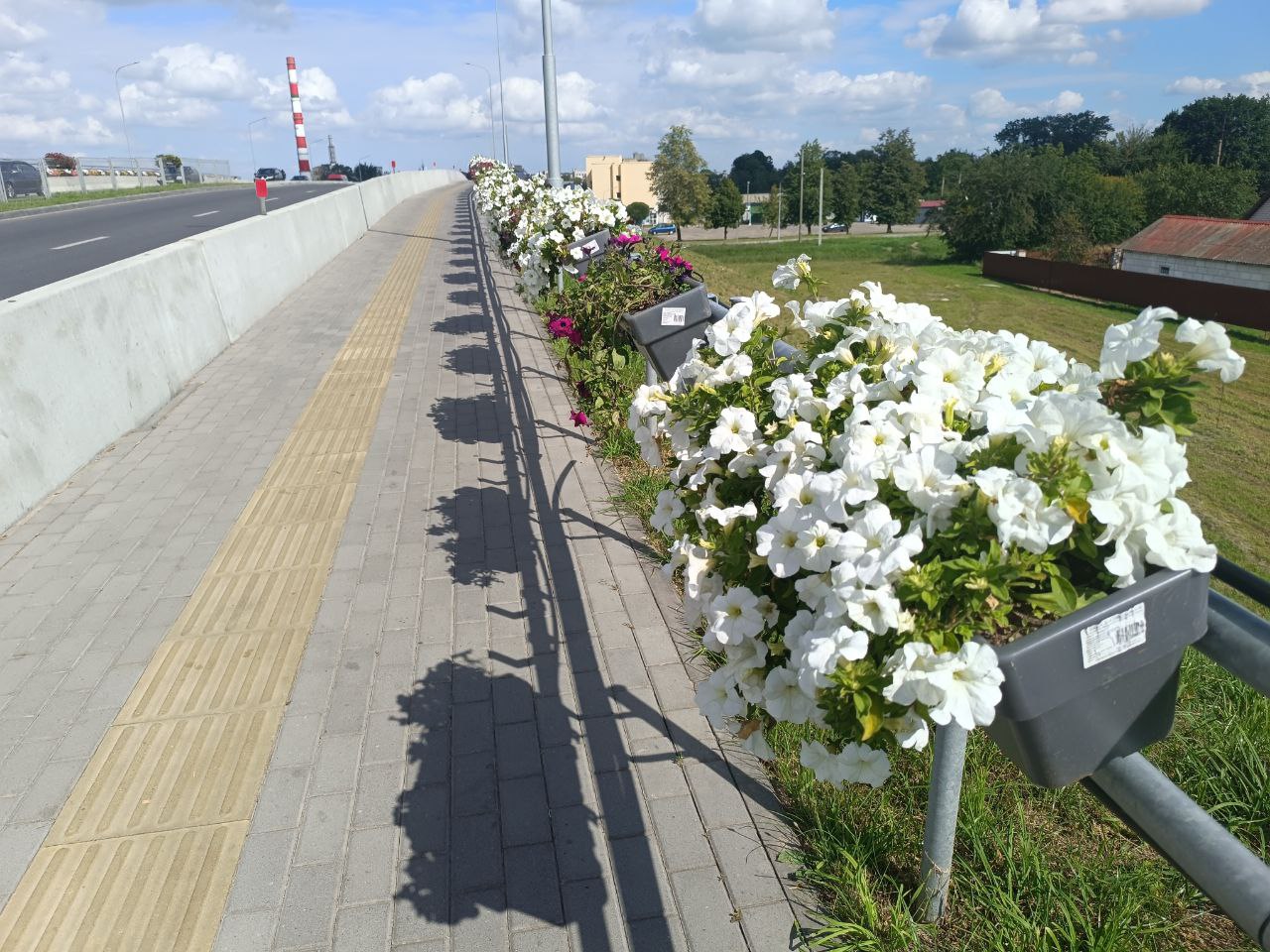 По его словам, часть цветов была высажена еще весной, но работы по озеленению города все еще продолжаются. Новые клумбы будут разбиты по ул. Советской, ул. Кирова, на пр. Победы. Также планируется до конца оформить цветами оба путепровода – по ул. Ленинской и возле старого здания ГАИ. Пока здесь кашпо установлены с перерывами, но к концу недели они превратятся в одну сплошную яркую линию.