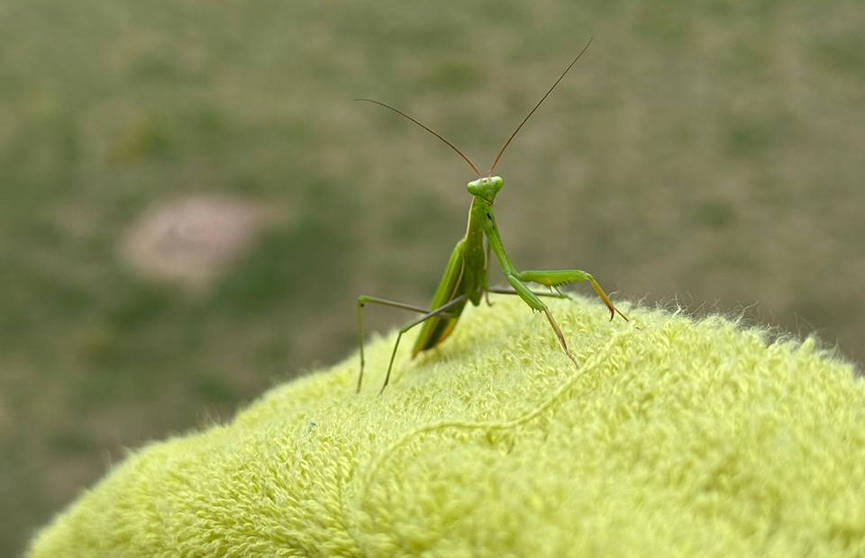«Раньше встречаться с богомолами мне не приходилось. Поэтому когда заметил на полотенце прикольную зеленую штучку, решил заснять ее на видео. Судя по внешнему виду богомола, он тоже был в шоке от меня», – шутит Виталий.