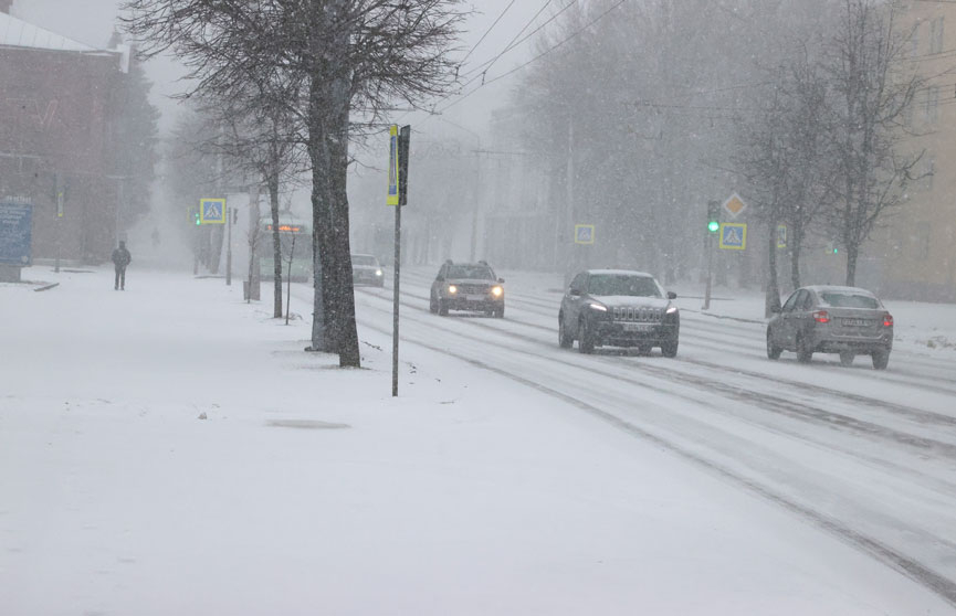 По данным Белгидромета, сегодня по республике ожидаются усиление ветра и сильный снег, в связи с этим объявлен оранжевый уровень опасности.
