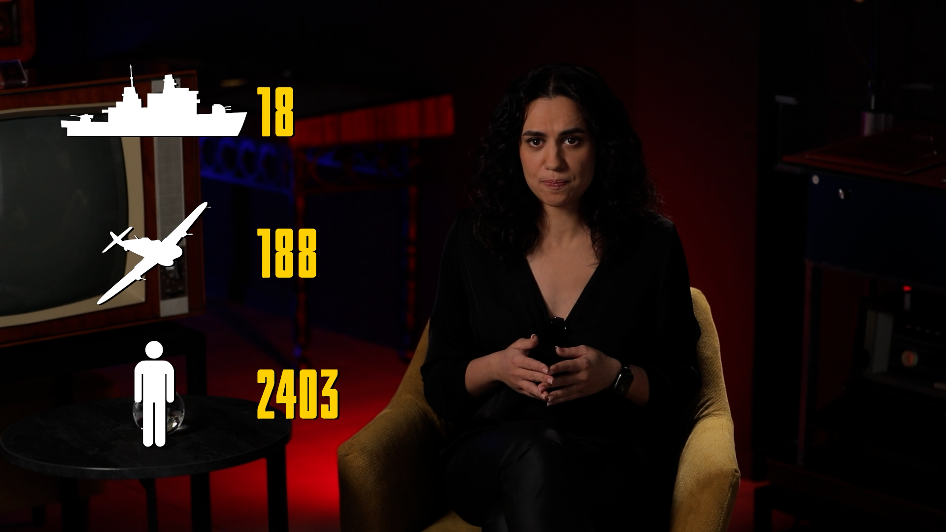 Потоплено или повреждено 18 кораблей. Три легких крейсера, три эсминца и четыре других корабля. Повреждения получили все восемь линкоров: «Аризона», «Калифорния» и «Оклахома» потоплены; «Вест Вирджиния» находилась под угрозой затопления, а «Невада» села на мель. Наименее пострадавшим линкором стала «Пенсильвания». Уничтожены 188 военных самолетов, еще 159 сильно повреждены. В результате атаки на Перл-Харбор погибло 2403 американца. Еще 1178 человек получили ранения.