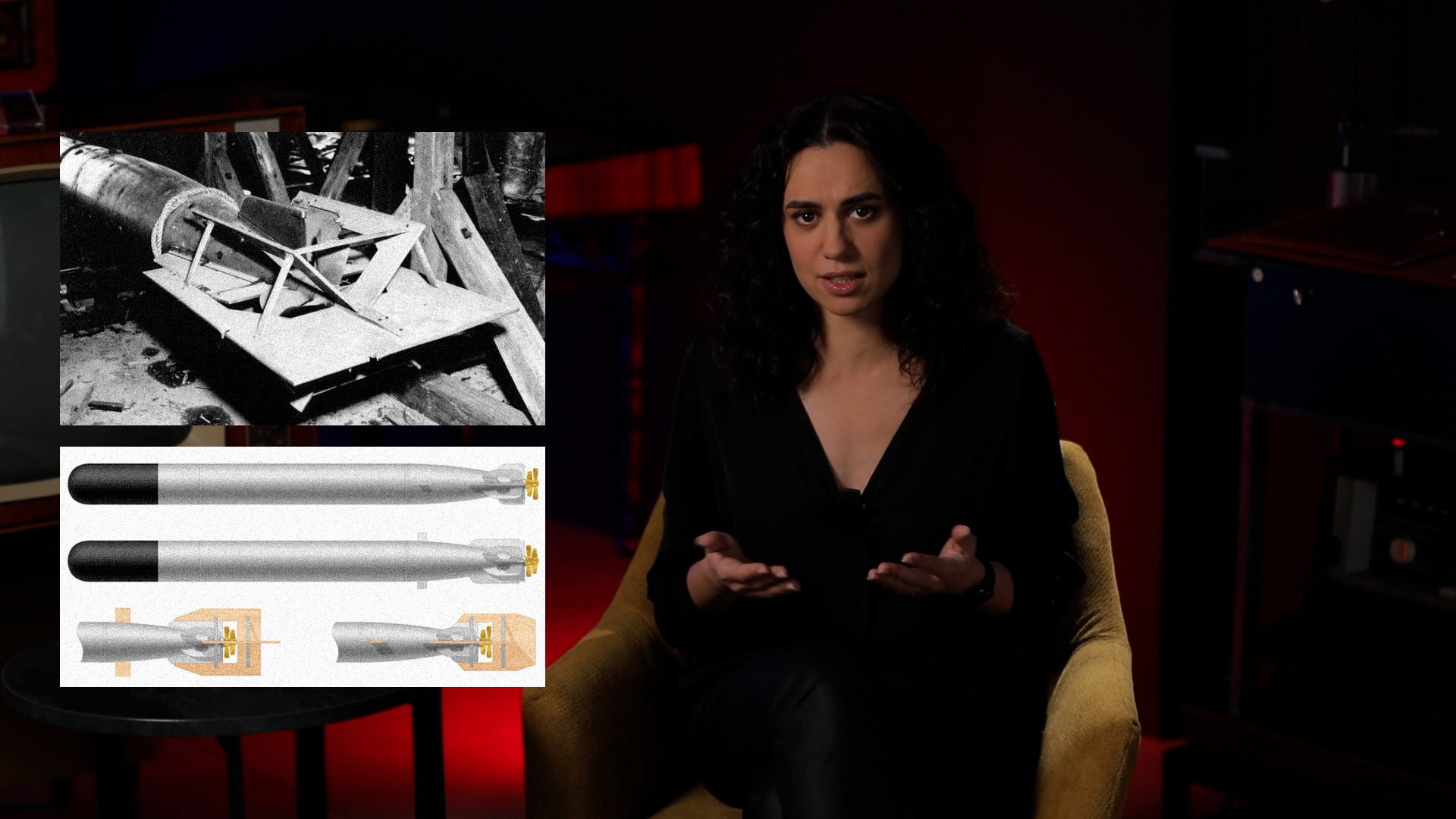 Интересно подошли к решению проблемы мелководья (глубина гавани составляла всего 12 метров). Чтобы те не зарывались в песок, торпеды оснастили специальными деревянными стабилизаторами.