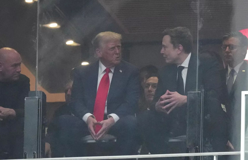 Маск и Трамп, как уточняется, после состоявшегося между ними разговора пожали другу другу руки, после чего бизнесмен покинул трибуну, где находился глава Белого дома. Кроме того, американский лидер похлопал Маска по спине на прощание.