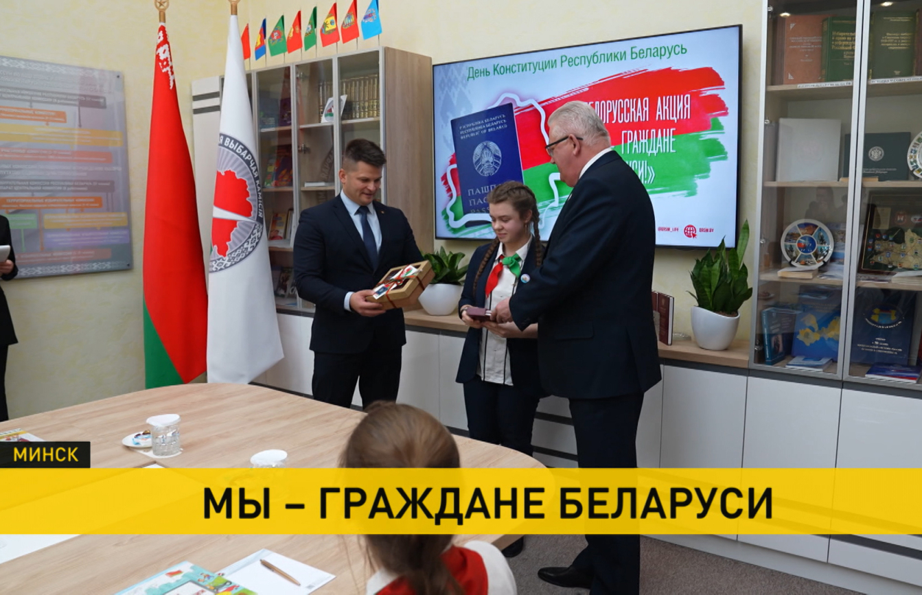 В ЦИКе главный документ получили десять школьников из разных регионов. Отличники, волонтеры, спортсмены, победители конкурсов – они уже вносят вклад в развитие Беларуси. Помимо паспорта, вручили символичное письмо «От поколения победителей наследникам Победы» и Конституцию Беларуси. Основному закону – 30 лет.