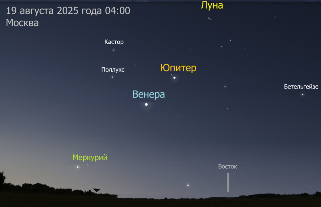 Парад планет можно будет наблюдать в ночь на 19 августа – Меркурий, Венера, Юпитер и Луна выстроятся в одну линию на небе северного полушария. Об этом информирует Лаборатория солнечной астрономии Института космических исследований (ИКИ) РАН.