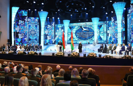 «Беларусь перешагнула порог нового года. Мы встретили его со светлыми и добрыми надеждами, которые неразрывно связаны с пережитыми событиями года минувшего. Старый Новый год дает нам прекрасный шанс подвести итоги и взять в новый год все лучшее, что удалось сделать, и то, чем все мы вместе гордились, гордимся и восхищаемся. Прежде всего бесценные таланты, добросовестный труд профессионалов, которые присутствуют сегодня в этом зале, – журналистов, деятелей искусства, учителей, социальных работников», – сказал белорусский лидер.