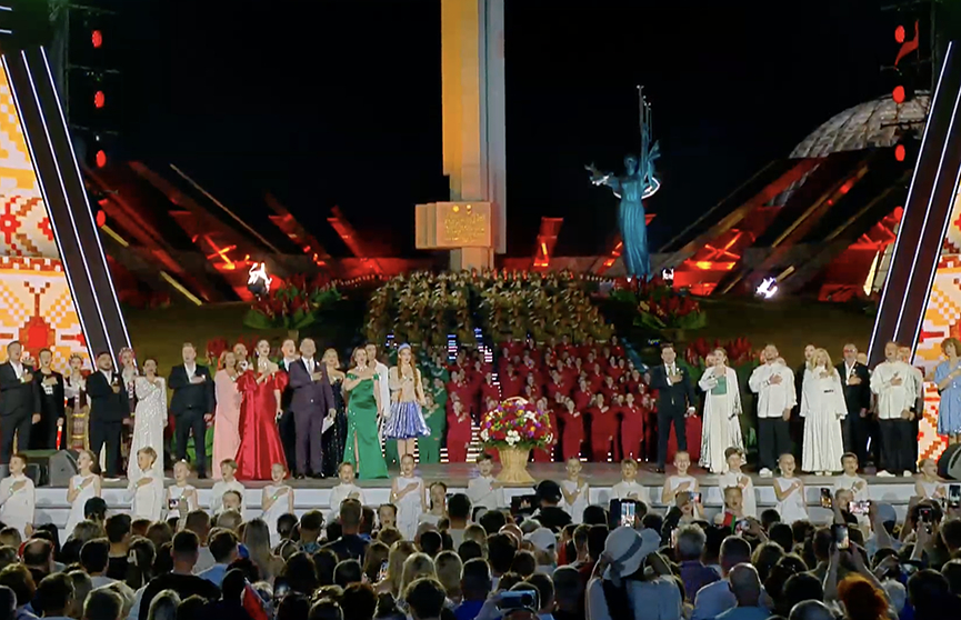 Одним из самых проникновенных и знаковых моментов праздничных торжеств 3 июля стала акция «Споем гимн вместе». Вечером за 5 минут до 23:00 мотив, знакомый каждому белорусу, зазвучал над всей страной!