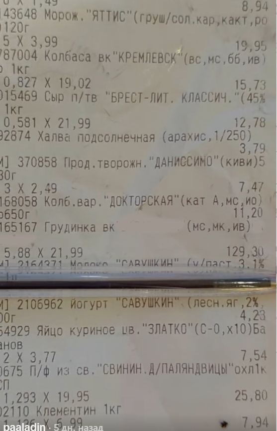 Как пояснил мужчина, закупка была большая – четыре пакета продуктов. Перед походом в магазин семья прикинула, что на товары уйдет примерно 250 рублей с погрешностью +/- 50 рублей. Поэтому при расчете на кассе на сумму в чеке особого внимания не обратили. Уже дома, распаковав продукты, поняли, что объем купленного и сумма, которую за них отдали, не сходятся.