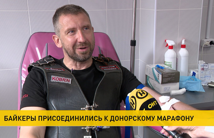 В столичном центре трансфузиологии стартовал донорский марафон. Он приурочен к 80-летию освобождения Беларуси. Его открыл первый белорусский мотоклуб «Железные братья».