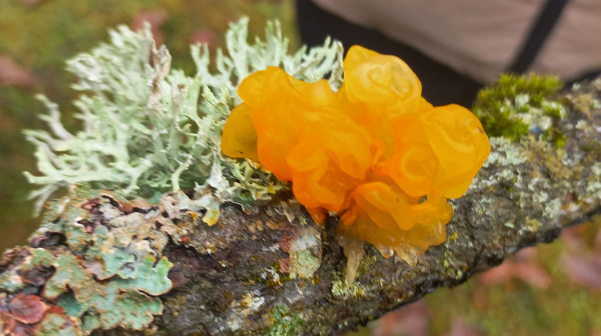 В Беловежской пуще обнаружили необычный для зимней поры гриб – Дрожалку оранжевую, также известную под народными названиями «Золотое желе», «Желтый мозг» и «Ведьмино масло». Как сообщает пресс-служба национального парка, это позднеосенний гриб, но благодаря изменениям климата теперь его можно встретить даже в зимний период.