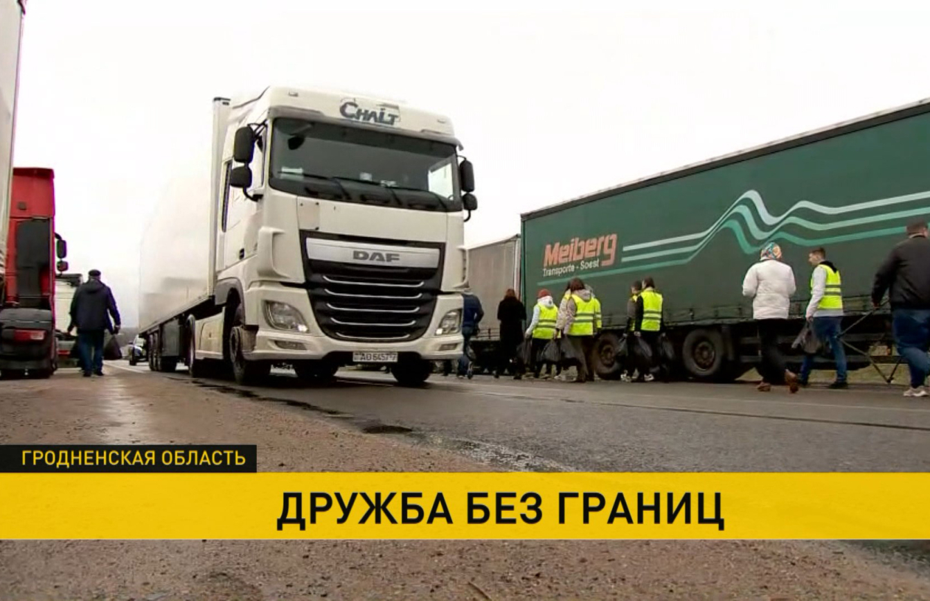 Некоторые водители ждут неделями. Белорусы не смогли остаться в стороне. Волонтеры из ближайших населенных пунктов решили помочь, кто чем может – продуктами, водой, средствами гигиены.
