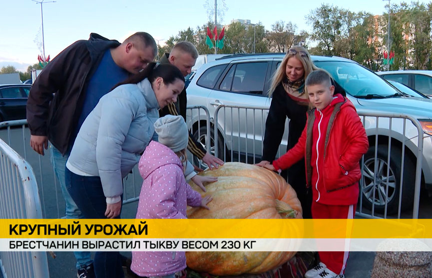 Огромная тыква – весом 230 килограммов – выросла в самом теплом регионе нашей страны. Брестчанин привез ее со своего дачного участка в центр города. Внимания у экспоната – хоть отбавляй.