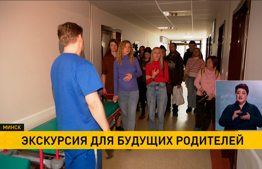 В родильном отделении 5-ой городской клинической больницы Минска – экскурсия для будущих мам и пап. Акция приурочена к неделе родительской любви, которая проходит в эти дни в Беларуси.