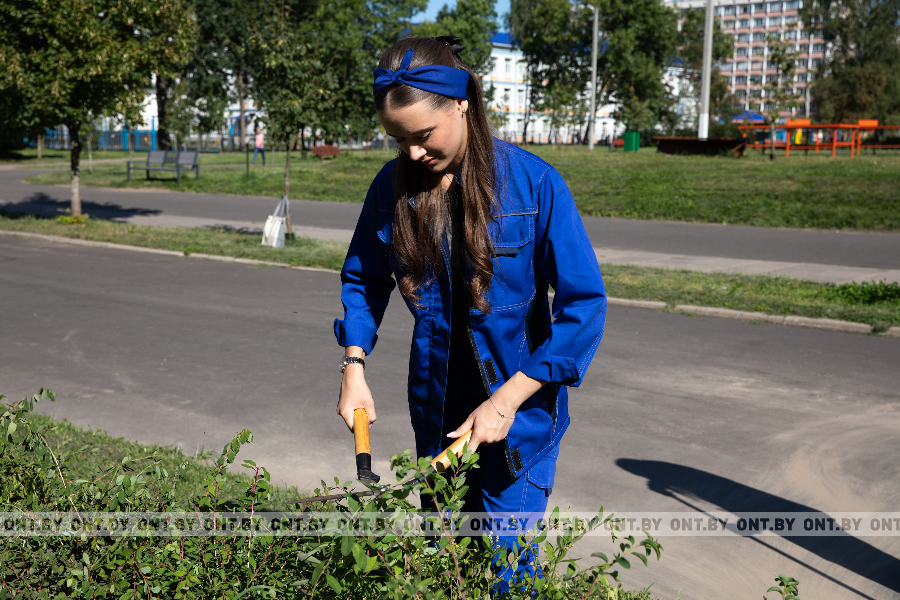 Девушки убрали зону отдыха Цнянская «Гармония и город»: подмели улицы, сгребли скошенную траву, пропололи клумбы, а также постригли кусты.