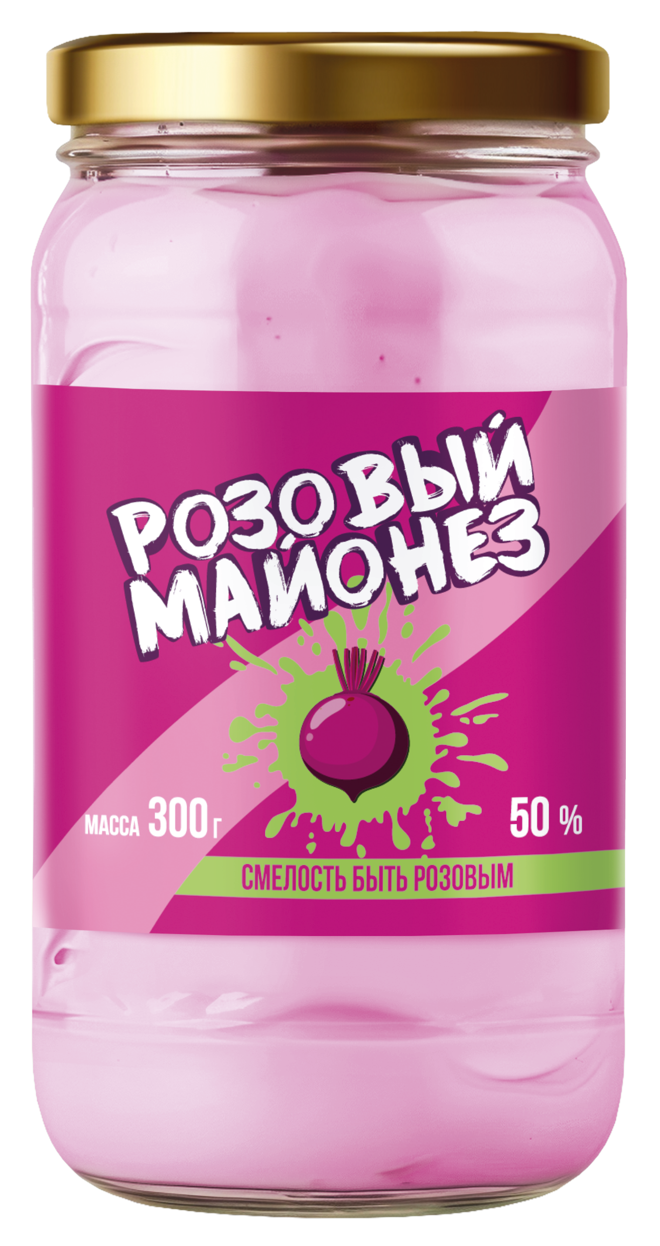 Что касается розового майонеза, то такой цвет ему придает сок свеклы. Как отмечает производитель, в составе соуса нет искусственных ароматизаторов и красителей. Майонез выпускается в стеклянных баночках фасовкой по 300 граммов.
