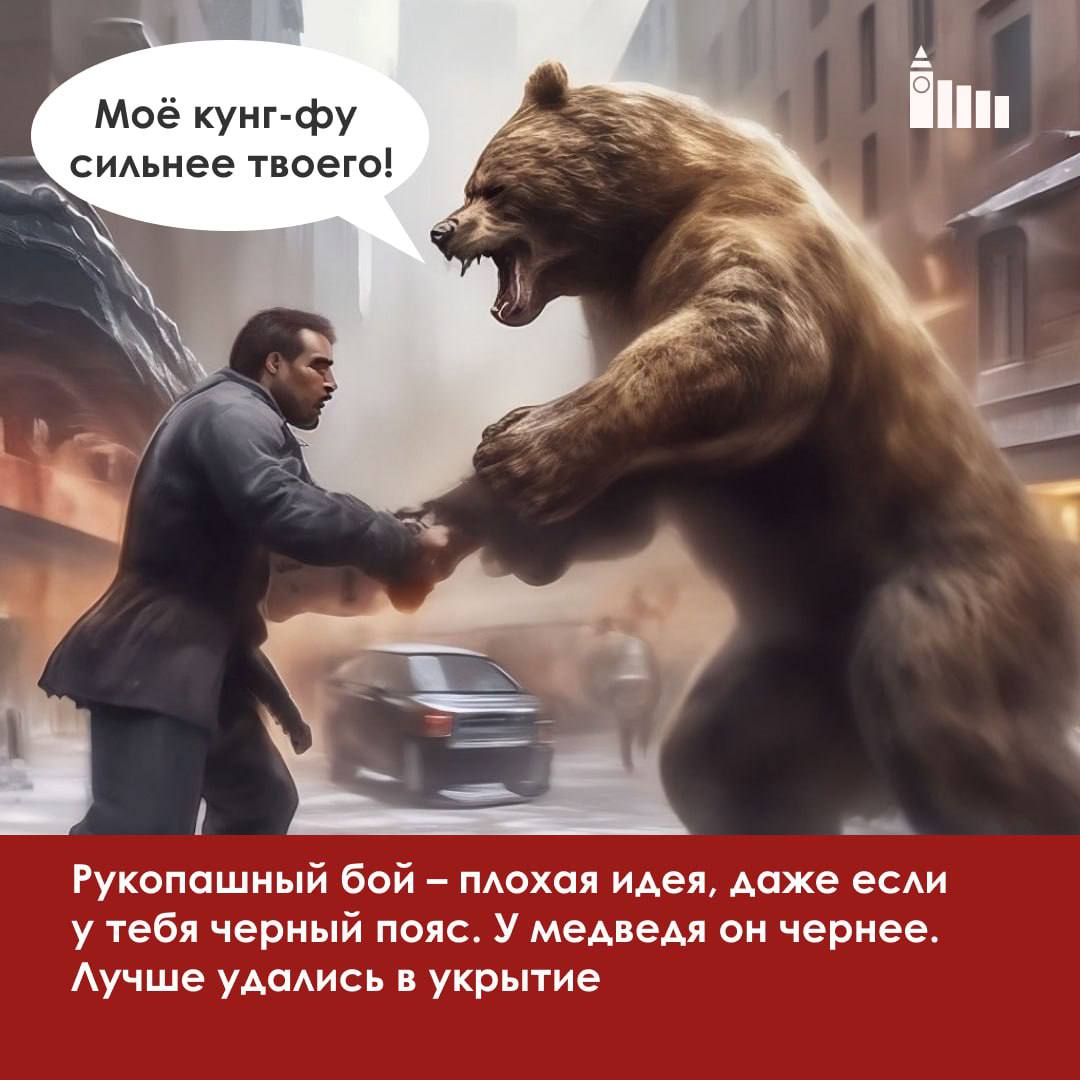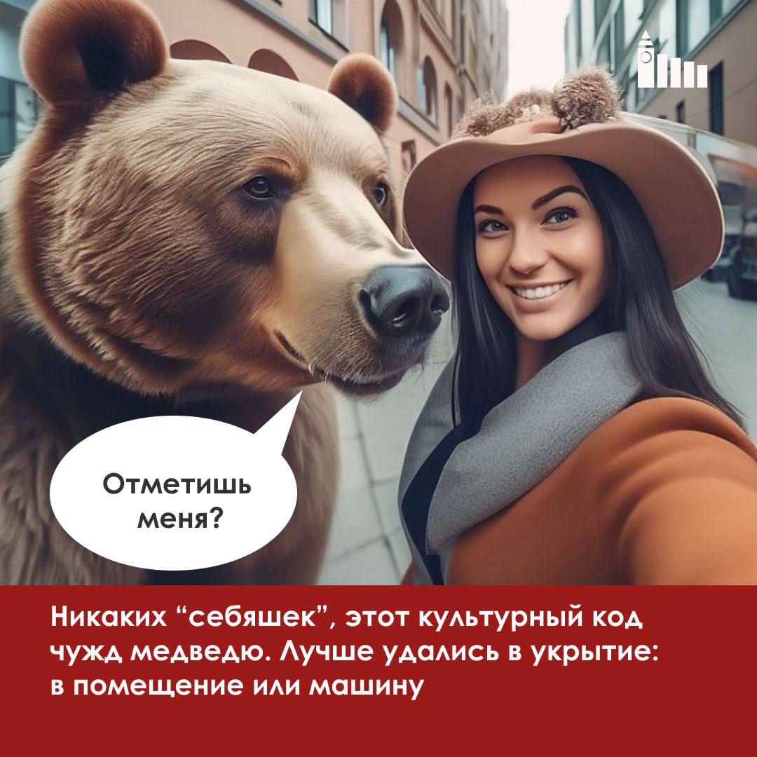 Мэрия Красноярска, в свою очередь, опубликовала карточки с советами «Как реагировать на встречу с медведем».