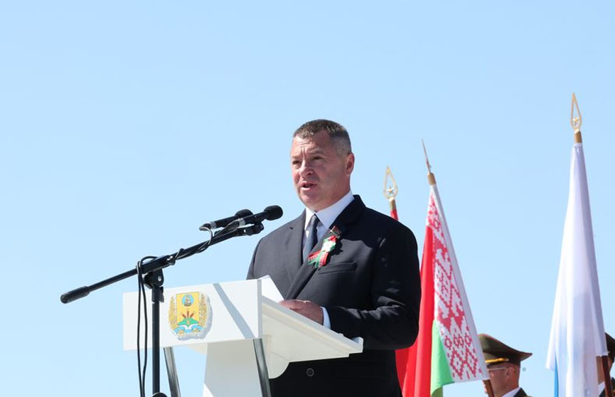 Председатель Могилевского областного Совета депутатов Александр Горошкин обратился ко всем, кто пришел к мемориалу.