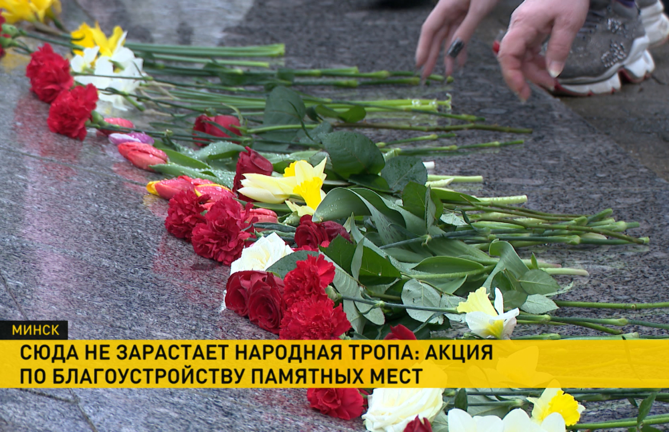 Утро активисты общественных объединений Заводского района и политических партий страны начали с наведения порядка и трогательной миссии – возложения цветов к памятному знаку павшим при освобождении Минска советских солдатам.