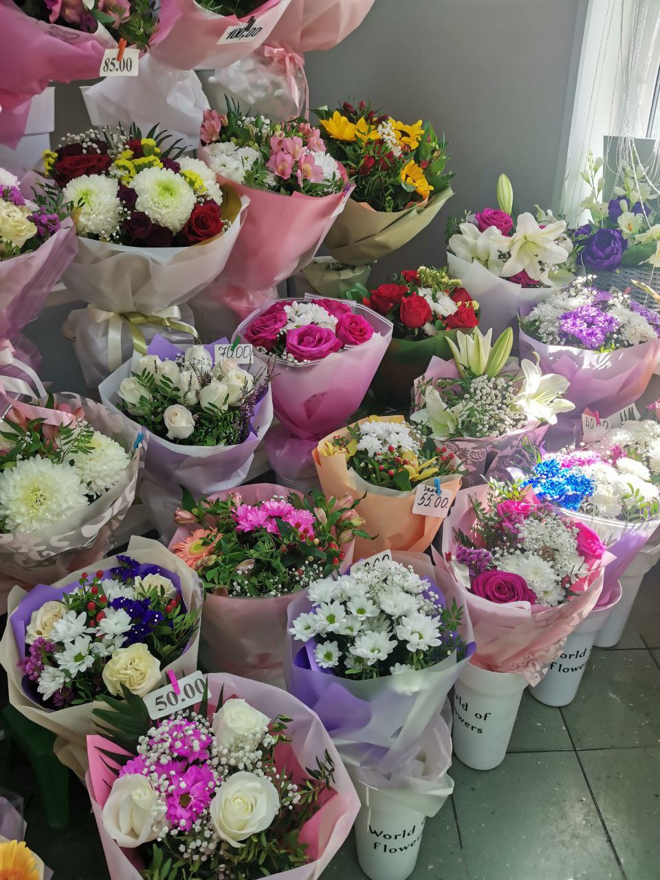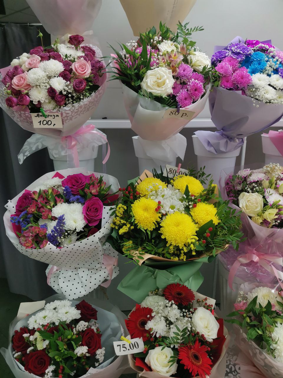 Цена на классические букеты начинается от 40 рублей, на мини-букетики – от 30 рублей. На красивые модные в среднем придется потратить от 75-80 рублей.
