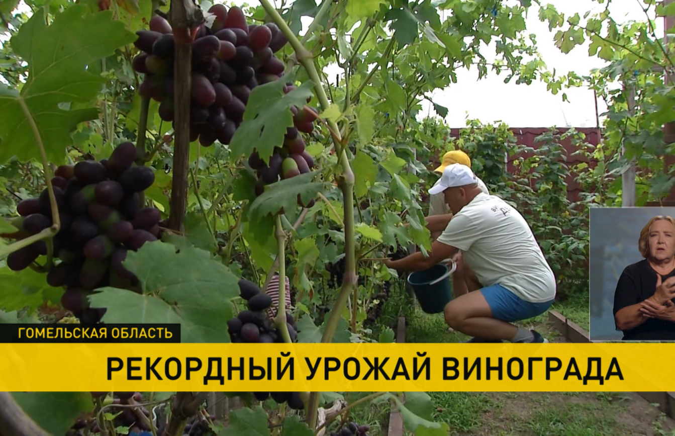 В Гомельской области – рекордный урожай винограда. Для региона это уже далеко не экзотика. Из-за жаркой погоды теплолюбивая культура третье лето подряд созревает раньше срока. Выращивают на больших плантациях и частных подворьях. У виноградарей в среднем по 300 сортов местной и зарубежной селекции. Зеленые, фиолетовые, синие: круглые, грушевидные и продолговатые – плоды разной формы и оттенков хорошо наливаются и дают в среднем по 20 килограммов с одного куста.