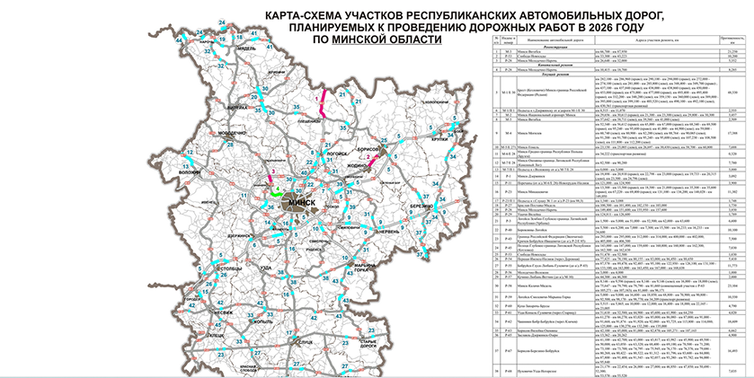 На сайте Минтранса размещены карты-схемы участков, где пройдут работы. Ведомство отмечает, что сеть автомобильных дорог в стране уже сформирована, а новая госпрограмма «Дороги Беларуси» на 2026–2030 годы направлена прежде всего на сохранение и поддержание инфраструктуры в состоянии, обеспечивающем комфортное передвижение по всей республике.