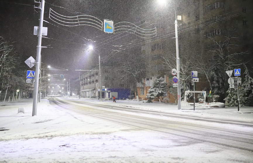 Снег в областном центре шел все воскресенье, однако из-за положительной температуры, а также многочисленных пешеходов и транспорта, он держался не очень долго. Вечером ситуация изменилась, а ночью в Гомель и вовсе пришла «зима».