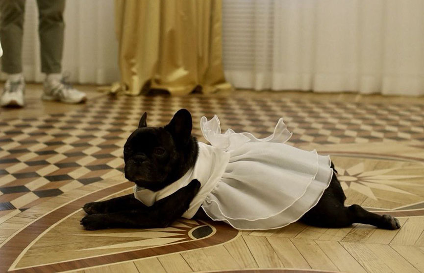 В Гомеле молодожены пришли в загс с французским бульдогом в свадебном платье