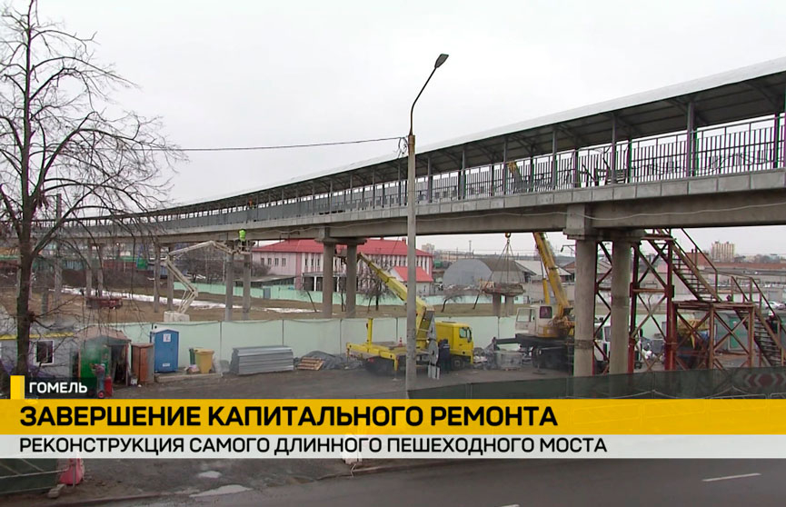 В Гомеле завершается реконструкция самого длинного пешеходного моста в стране. Сооружению более 35 лет. За это время оно сильно износилось и нуждалось в капитальном ремонте.
