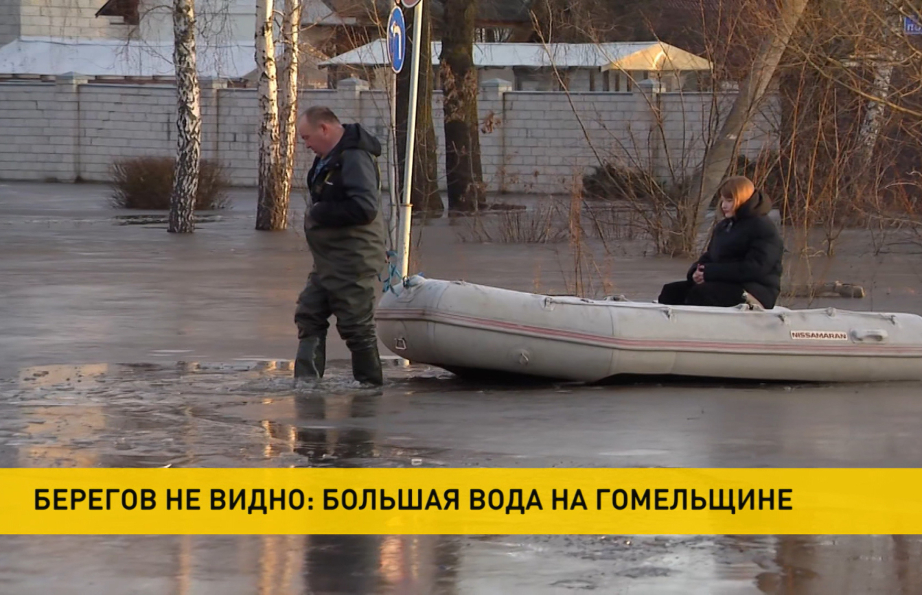 Под Веткой большая вода отрезала единственную дорогу в маленькую деревню, люди заблокированы в своем населенном пункте. А в самом Гомеле спасатели выходят на дежурство в семь утра, чтобы на лодке доставить на учебу школьников и студентов.