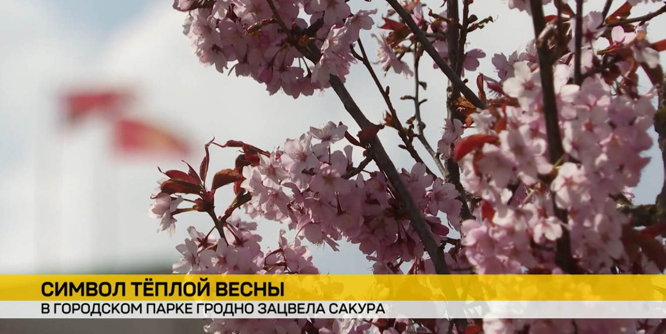 В городском парке Гродно зацвела – сакура. Согретая теплым солнцем в этом году почти на две недели раньше обычного.