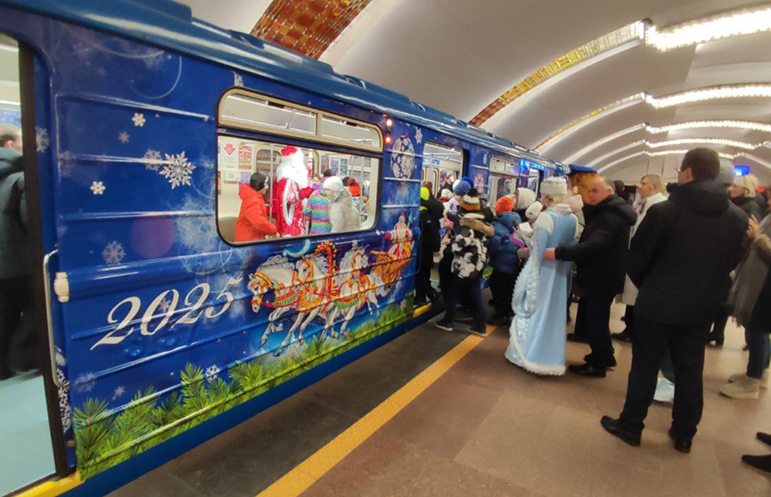 В метро Минска запустили брендированные поезда в новогодней стилистике