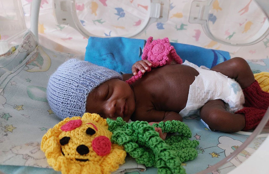 Родители малышки, которую назвали Сабина, родом из Гвинеи. Крошка появилась на свет в конце ноября прошлого года в ГУ РНПЦ «Мать и дитя» на 23-24 неделе гестации. Маме новорожденной пришлось делать экстренное кесарево сечение. При рождении ребенок весил всего 600 граммов.